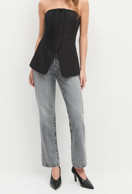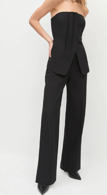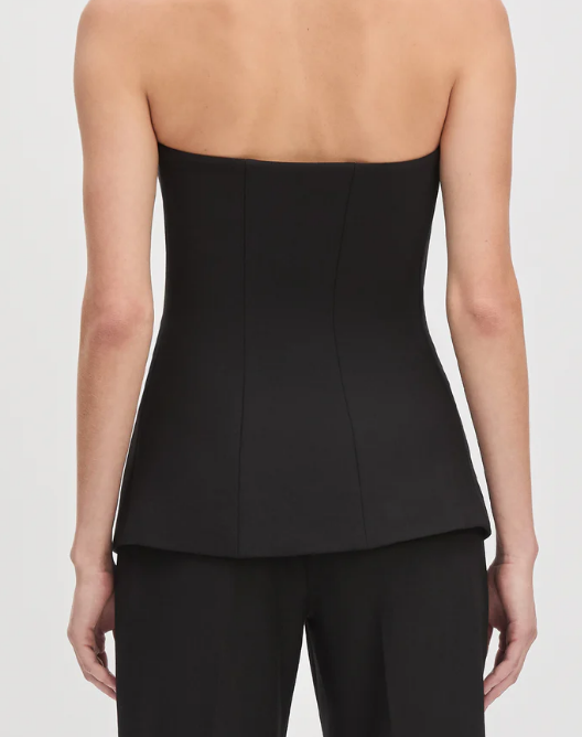This strapless bustier top features front pleat details, a body-skimming fit, and slight opening at the hem. Cut from a lightweight suiting blend with just enough stretch (because comfort counts). For a favorite look, pair with jeans or dress pants!