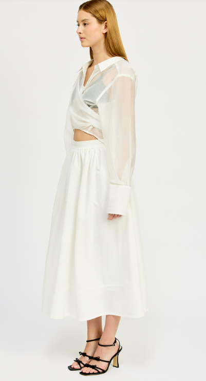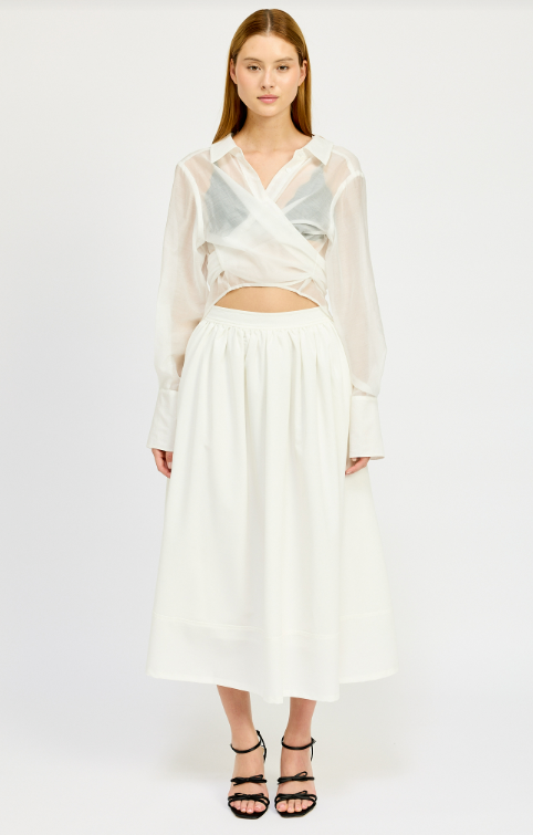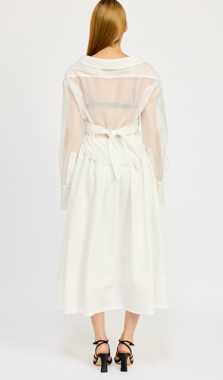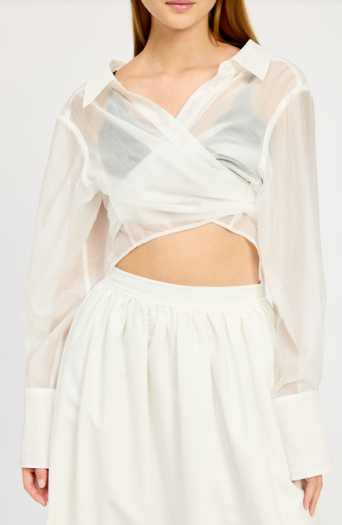 An elevated look on your basic button done. Sheer tailored button down shirt with tie back details.